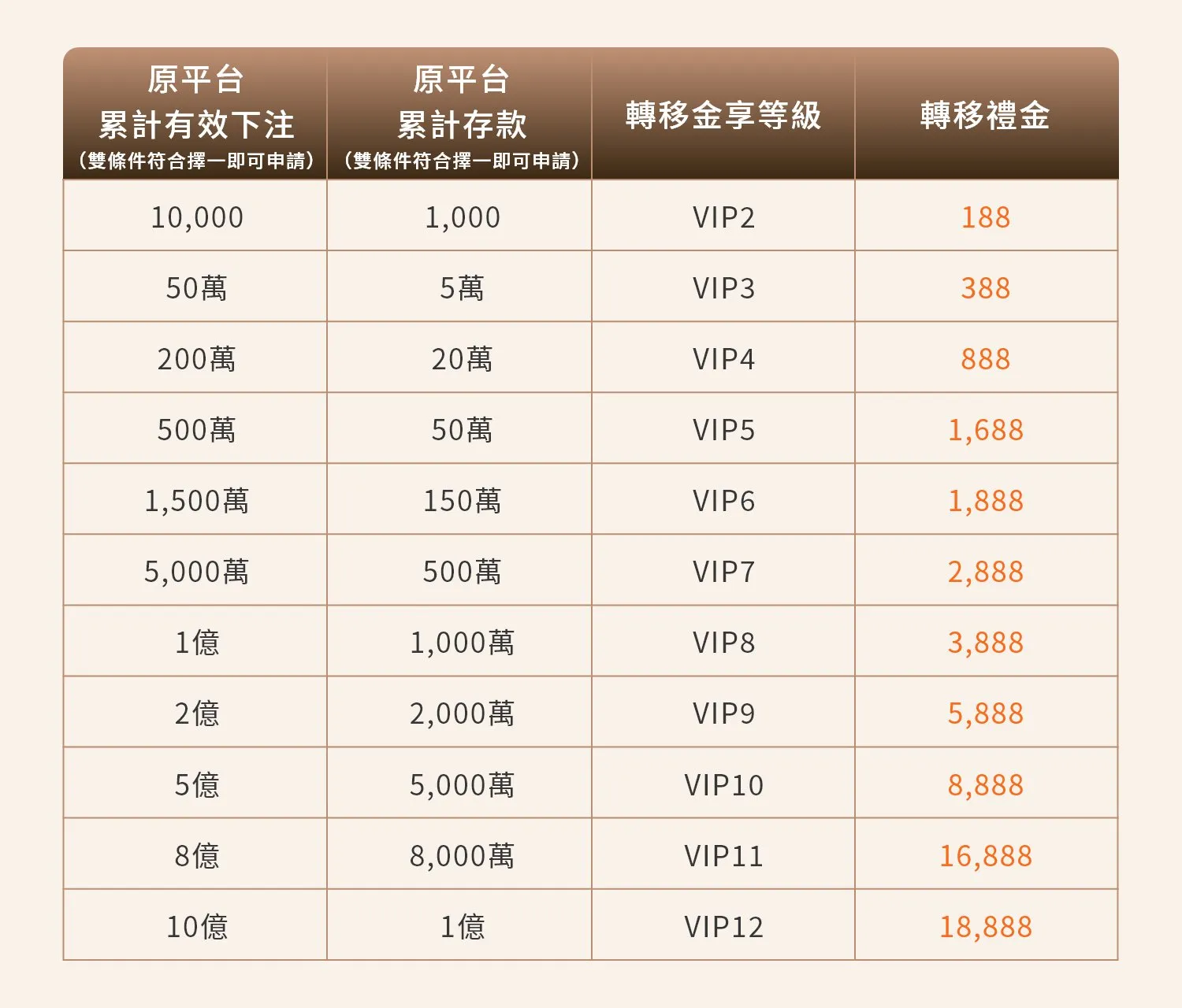 5️⃣ 每位會員限申請一次 VIP 轉移方案與轉移禮金,重複申請不予受理。